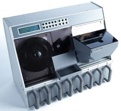 Counting and sorting all 8 UK coins at up to 700 per minute and a small desktop footprint makes the Scancoin SC22 a popular and reliable performer for all businesses and organisations taking coins in volume.